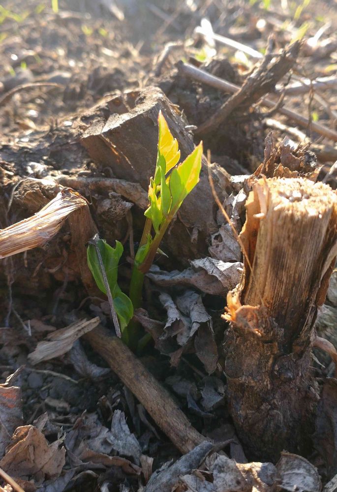 皇帝ダリアさんの新芽🌱を発見して嬉しくて思わずpicしてしまいました👀〜💜