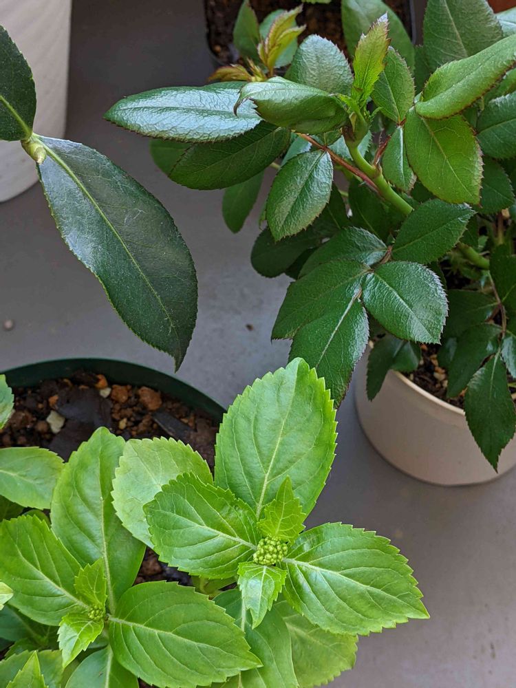 ミニバラの蕾がもうできてたので写真を撮ろうとしたら、ラグランジア ブライダルシャワーにも花芽ができているのに気付きました。