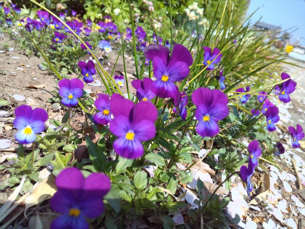 我が家もこぼれ種~のビオラが同じような花色で沢山咲いております。💜💙💜💙💜