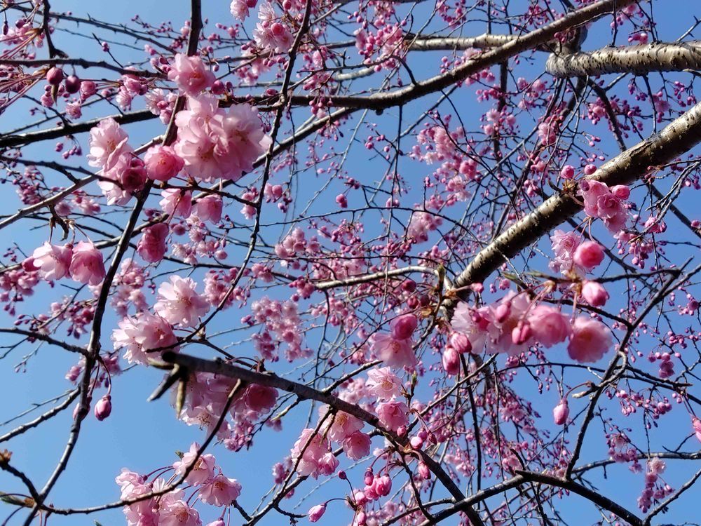 だいぶ開いた仙台八重枝垂れ桜🌸