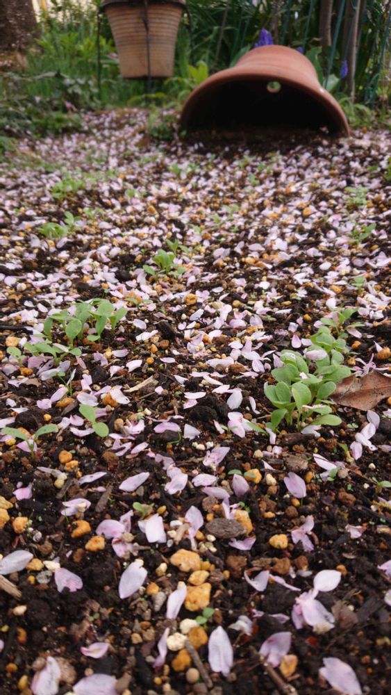 桜の花びらの中からネモフィラの芽🌱𓂃 𓈒