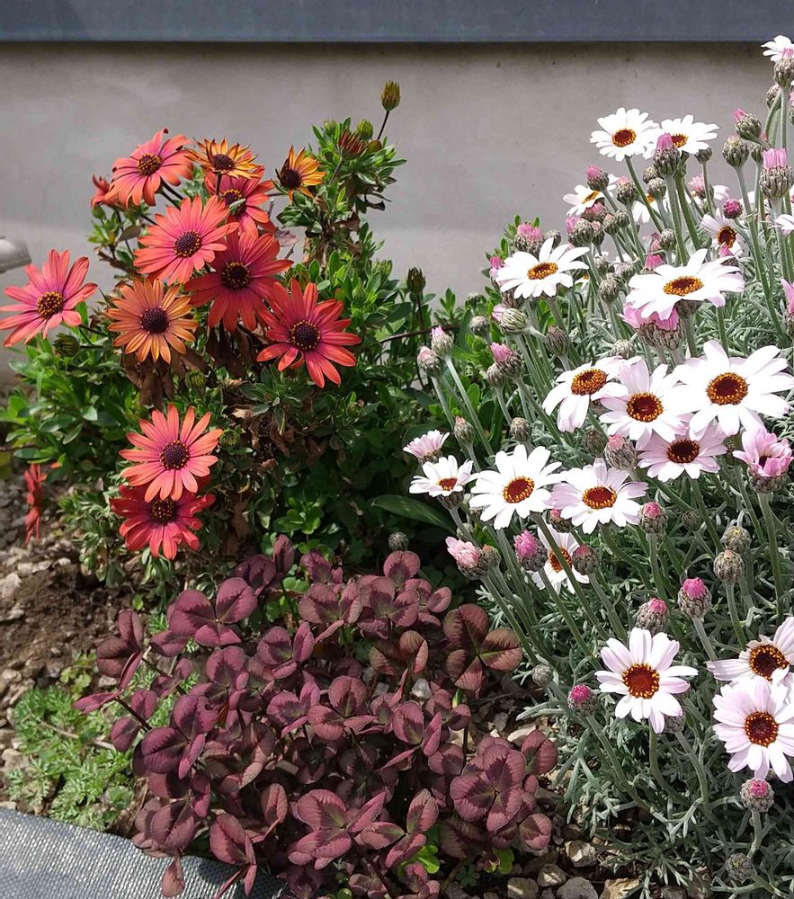 道路沿いの華あられが終わったら次は何を置こうか悩んでるんだけど、強烈な日差しと雨風に耐えて放っておけて梅雨までずっと咲き続けて花びらが散らかったりしない完璧なお花!ローダンセマムかな❓と思ってたところなんだ✨