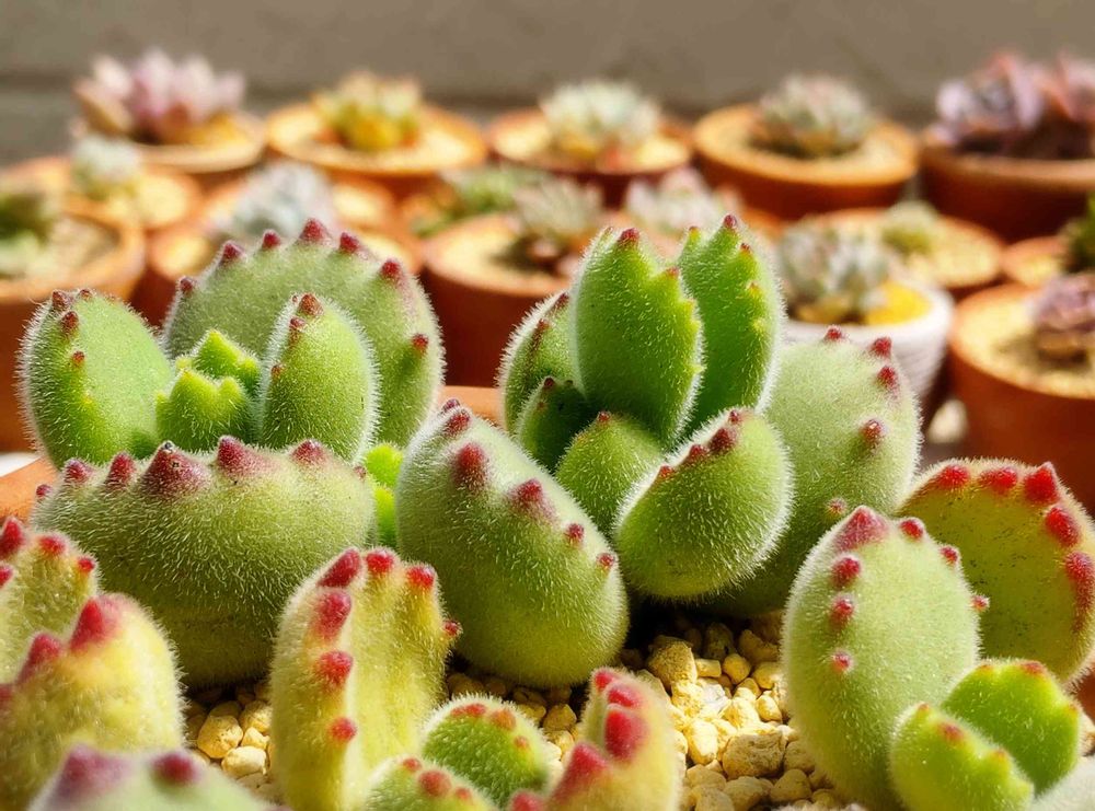 多肉のことも何も知らなかったのに園芸屋さんで何気なく熊さんと乙女さんをチョイスしたのが始まり♪私のセンス素晴らしかっなと思ってますദ്ദി˶ー̀֊ー́ )コズエ ナイス♪