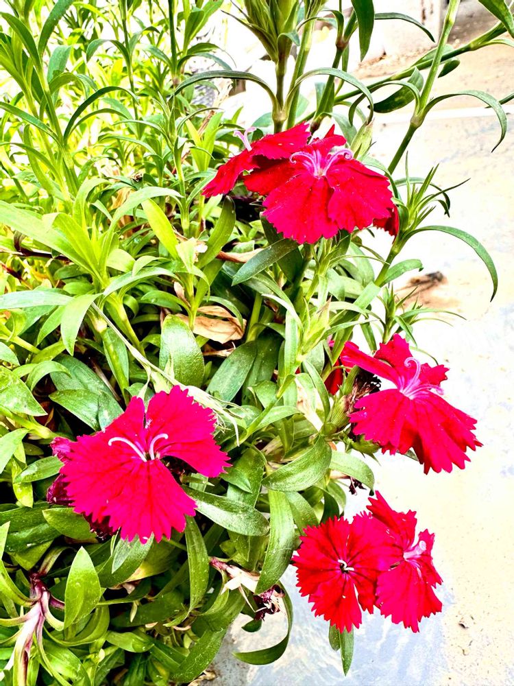 ベランダの赤いナデシコが元気に咲いています。(✿︎´ ꒳ ` )♡︎