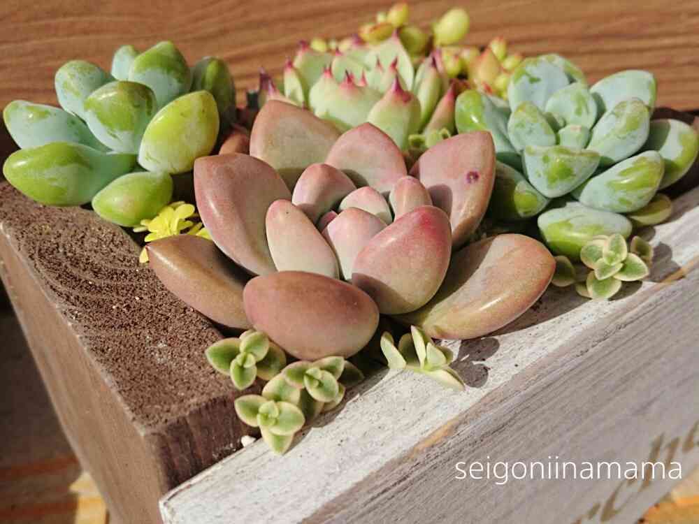 この木箱にぴったりの多肉ちゃんたちとのコラボ、今回は見落とさずにすんで、儲かった気分ですv( ̄ー ̄)v