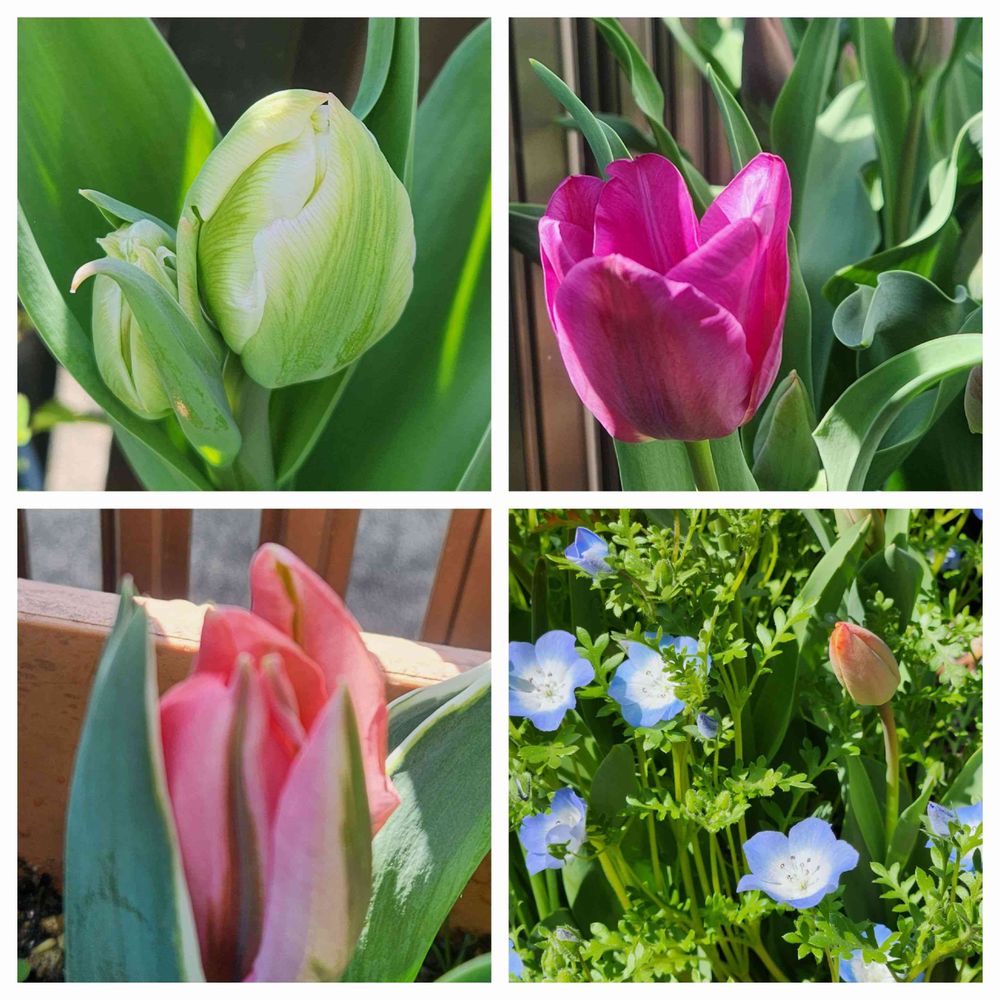 皆んなとても綺麗な色ですね。チューリップも素敵ですよね。豪華です。私は簡単なパンジービオラが好きなんですけど。双子ちゃん、咲くのが楽しみですね😊お仕事頑張ってね〜 チューリップより💕🌷🌹
