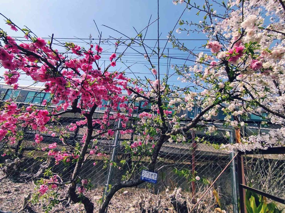 シダレモモ🌸…一本の幹から紅白(๑・̑◡・̑๑)