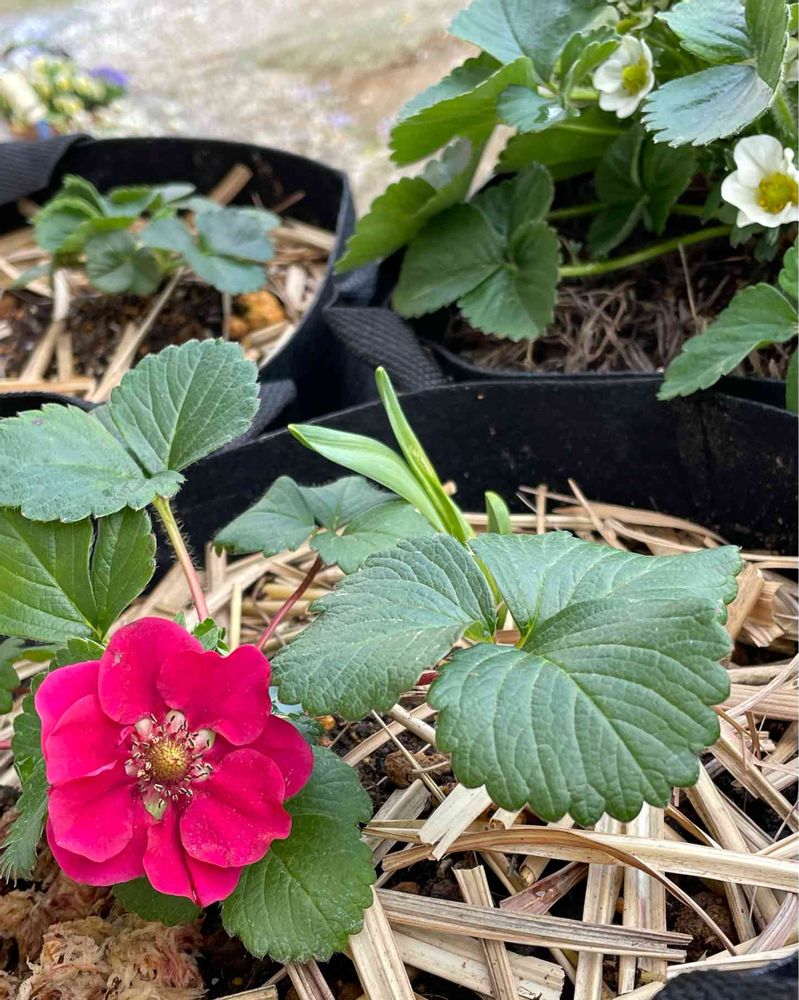 赤い花のイチゴなんてあるんですね🍓