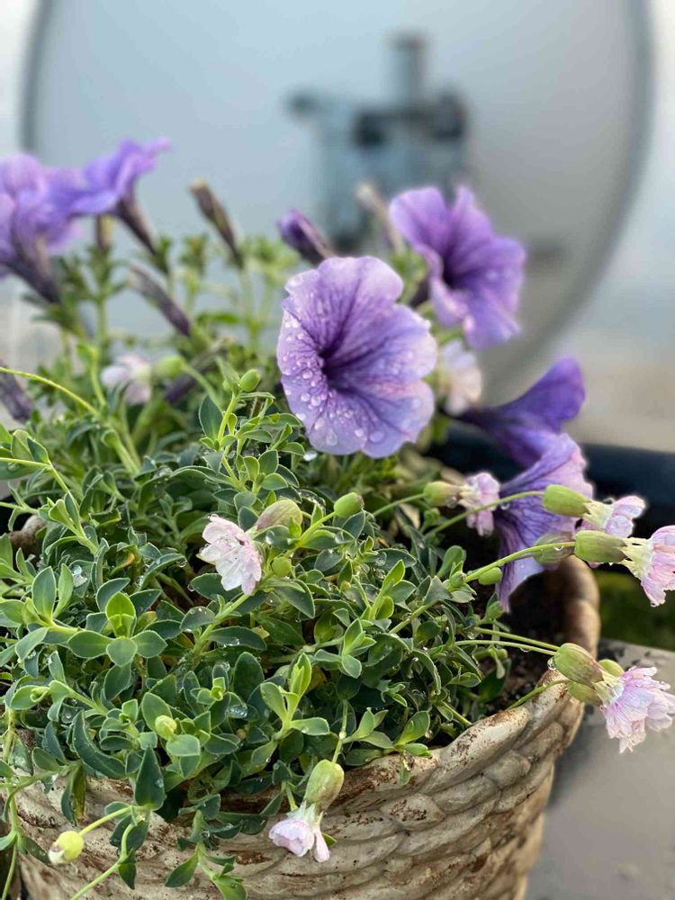 花やさん巡りしてきましたー。美味しいランチも、ともだちと。ペチュニア、ピンクのシレネも売ってて、ビックリ⁉️。