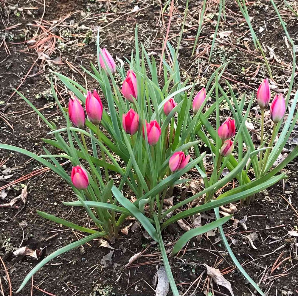 通り道のお家🏠の花壇に毎年、小さなかわいいチューリップ🌷楽しませて頂いてます