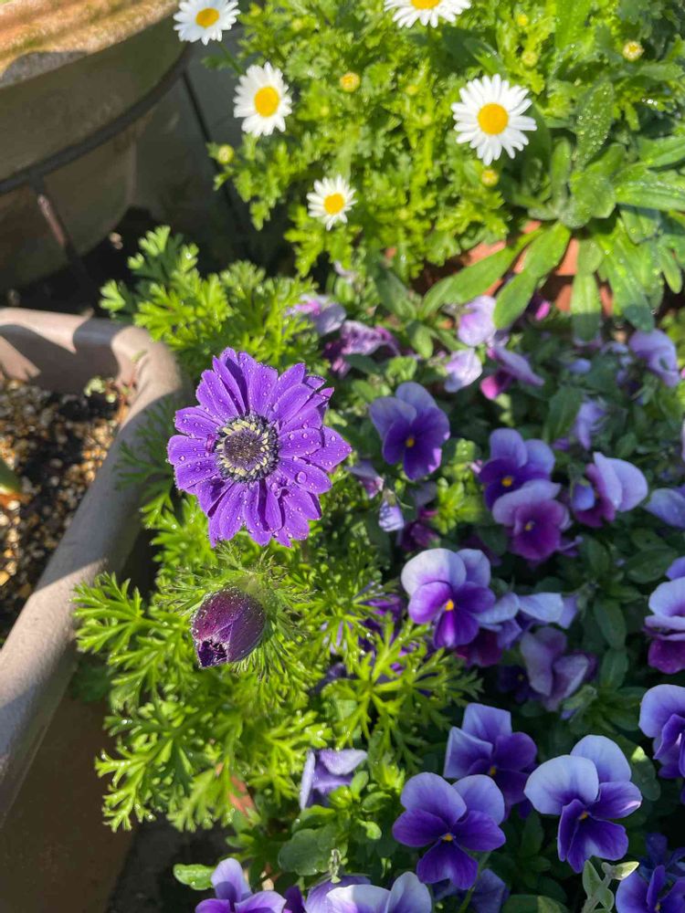 いろんなカラーのアネモネがあったはずだけど、ビオラを植えた時にこの鉢に持ってきたら紫大好きなんだねってかんじの鉢植えになりました😂管理も何もしてないのに花が咲いて嬉しい🥹