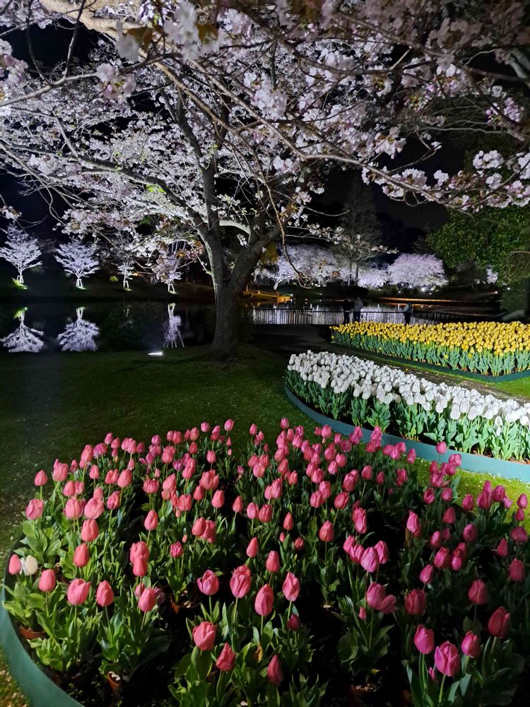 夜桜🌸、そしてチュリップ🌷がとても綺麗でした🎵