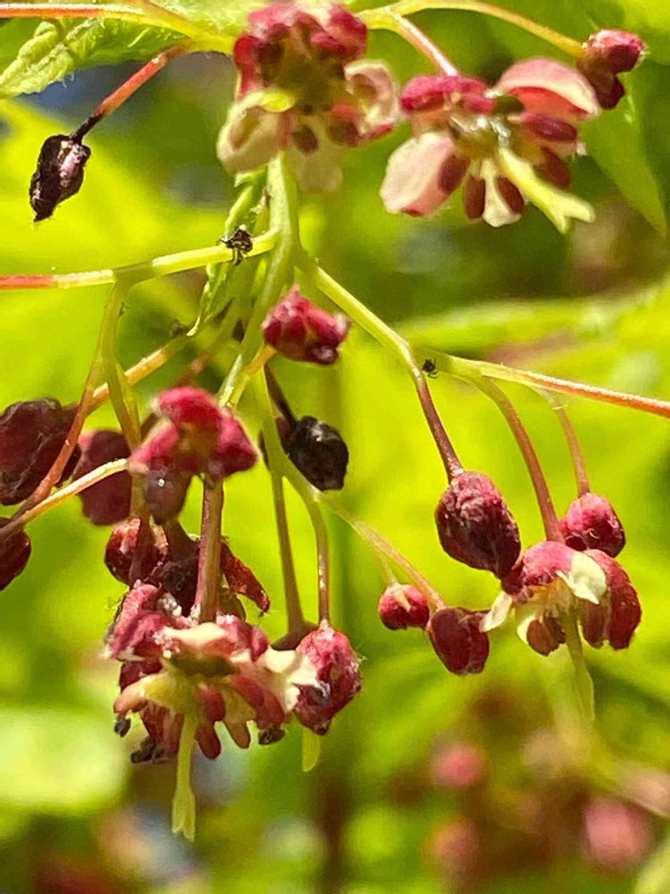 お疲れ様。🎶 もみじが沢山の花を付けて、風に揺られて。手が揺れてるのか、もみじが揺れているのか🤣💦 目が老眼👋🏻👋🏻
