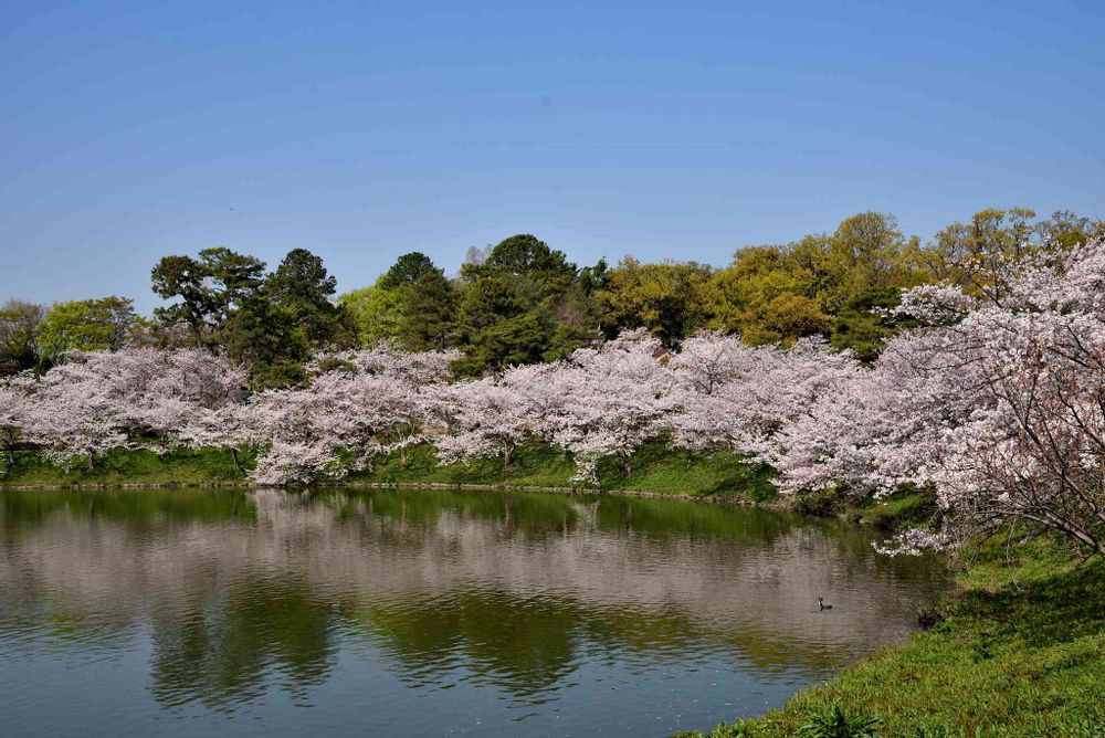 池の周りに桜が咲き誇っています💕