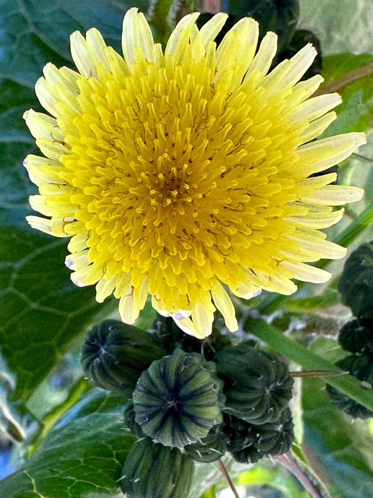 Sonchus oleraceus/Sonchus. Asteraceae. Asterales. Magnoliopsida. Tracheophyta Common Name/Common Sowthistle. Region of Origin/Eurasia. North Africa Symbolism/Courage. Overcoming. Adversity *Once the outer skin is removed, and can be cooked like asparagus. Photo 4/1 10:34am 2023
