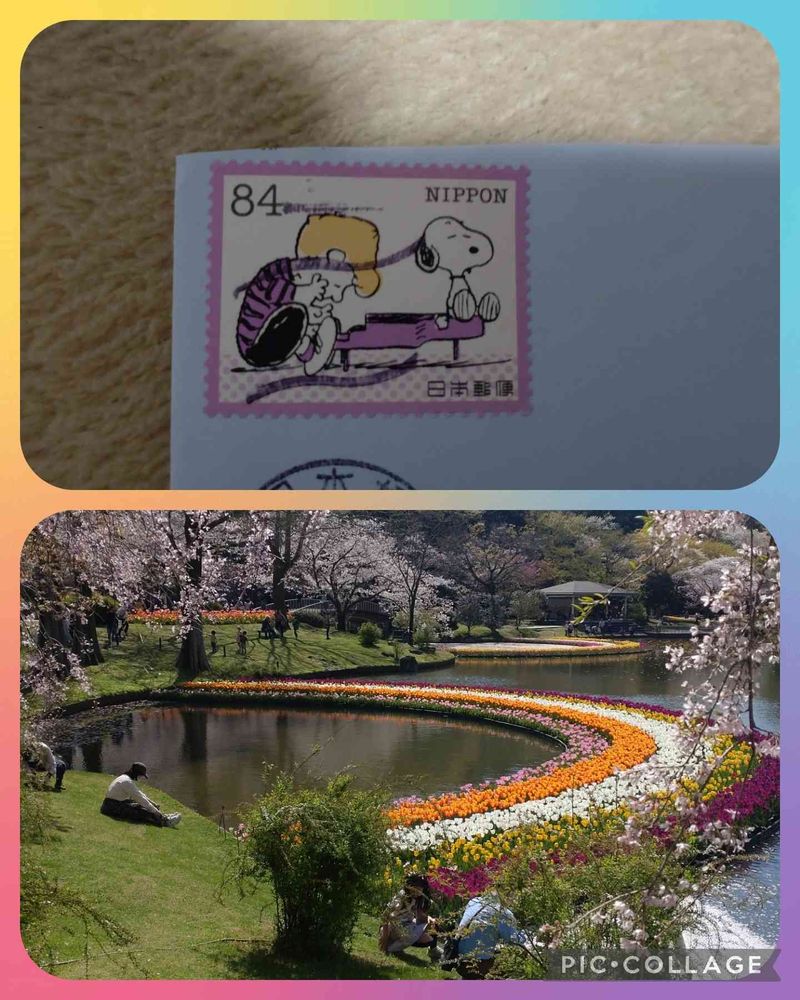 はままつフラワーパークの水辺のお花さん🌸とスヌーピー切手❣️