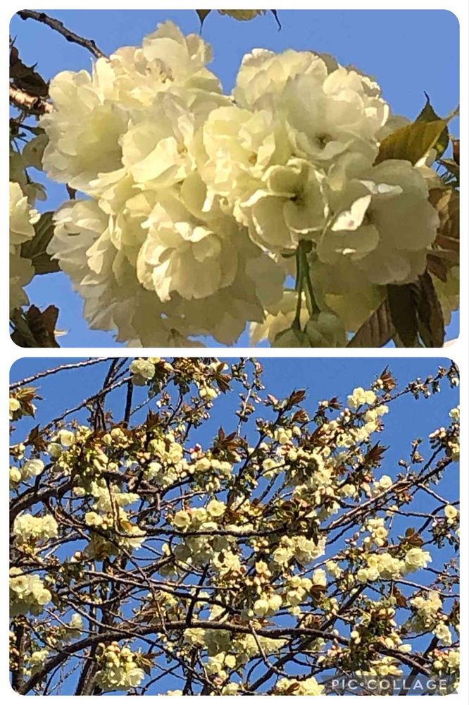いつもの散歩道で鬱金桜があっという間に満開になりました。