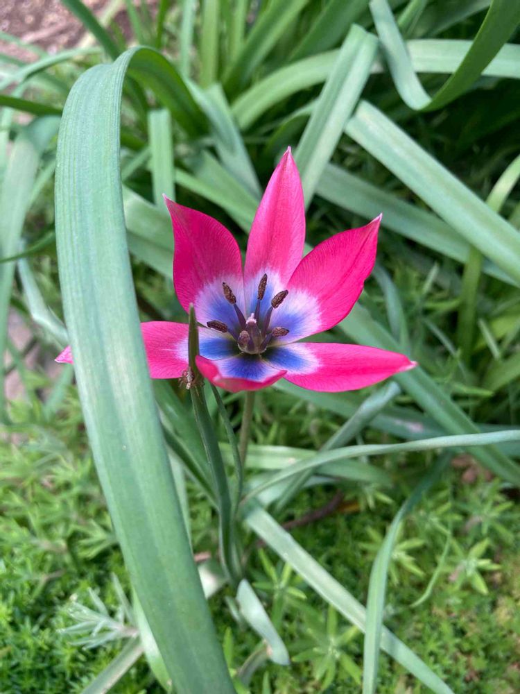 原種系ミニチューリップのリトルビューティー 3年前に白5個 赤5個植えて今はこの子が最後 結構頑張ってる♪