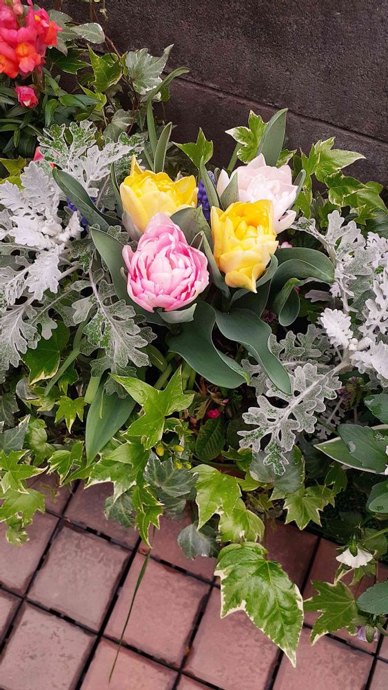 テラス,八重咲きチューリップ,寄せ植えの投稿画像