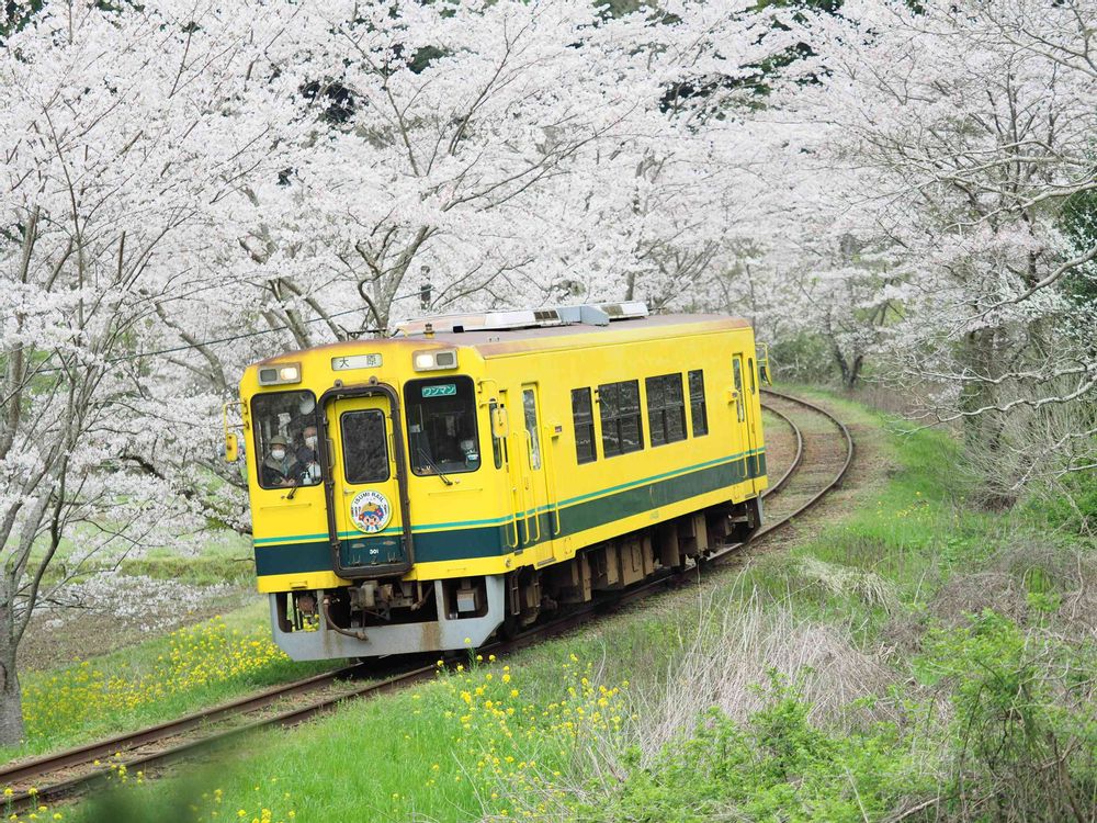 photo:ソメイヨシノと黄色い列車!