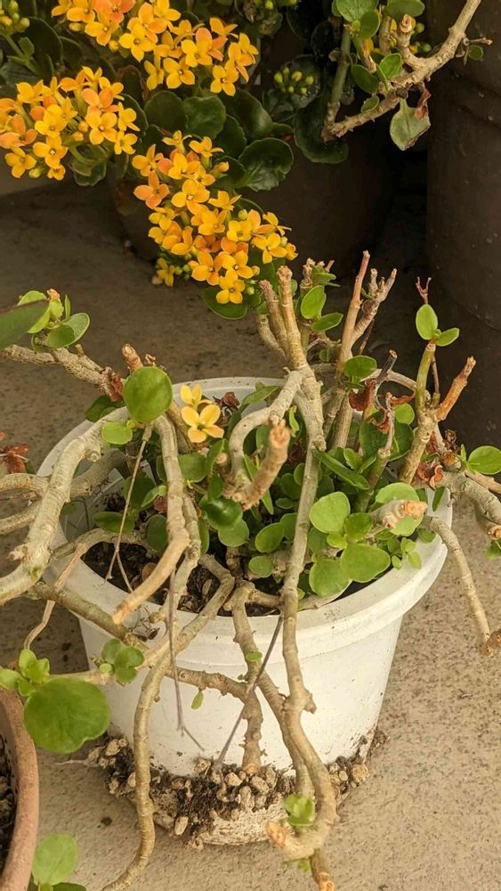 この子の名前がわからないのですが、我が家は、多肉植物さんを屋外で放置栽培してます。しかし、今年に入っての気温の変化に多肉さんの葉がドロドロに枯れてしまい、ショック😩でした。そこで、思いきって、短ーくカットして、この子の生命力を信じて見守ること数カ月。