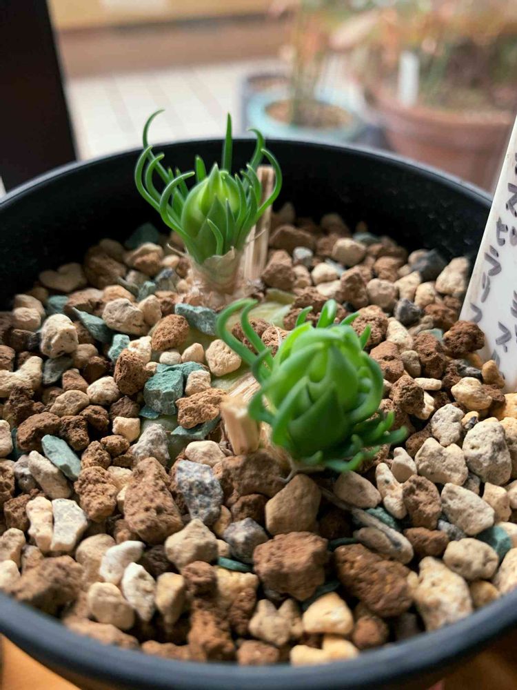 葉っぱが出て来なくて心配していたら、花芽が先に出て来てこんな姿になってしまいました。
