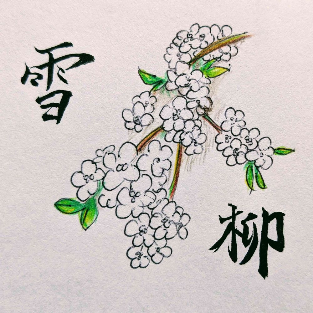 3/15 撮影した未投稿の雪柳を挿し絵にしちゃいました。