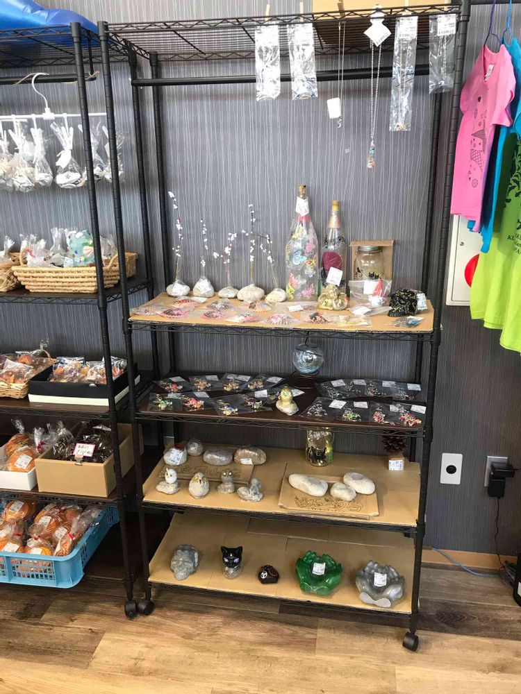 商品はこの館内の売り場にバラバラに置いており、棚にはまだまだ置いてる最中で!