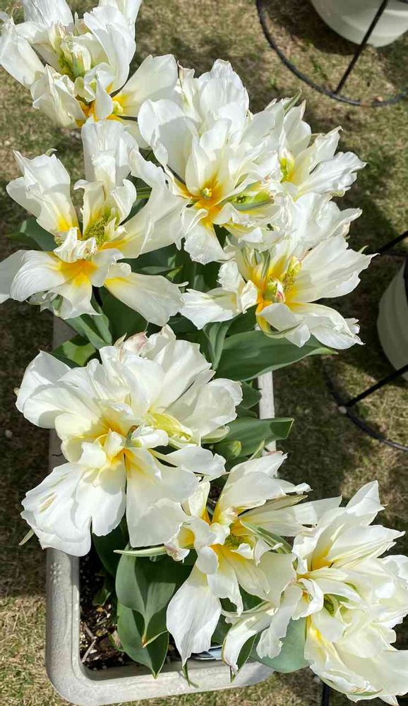 洋風な八重咲きは結構長く咲いてくれるので 毎年 2〜3種類くらい プランターや鉢に植えているんです🌷