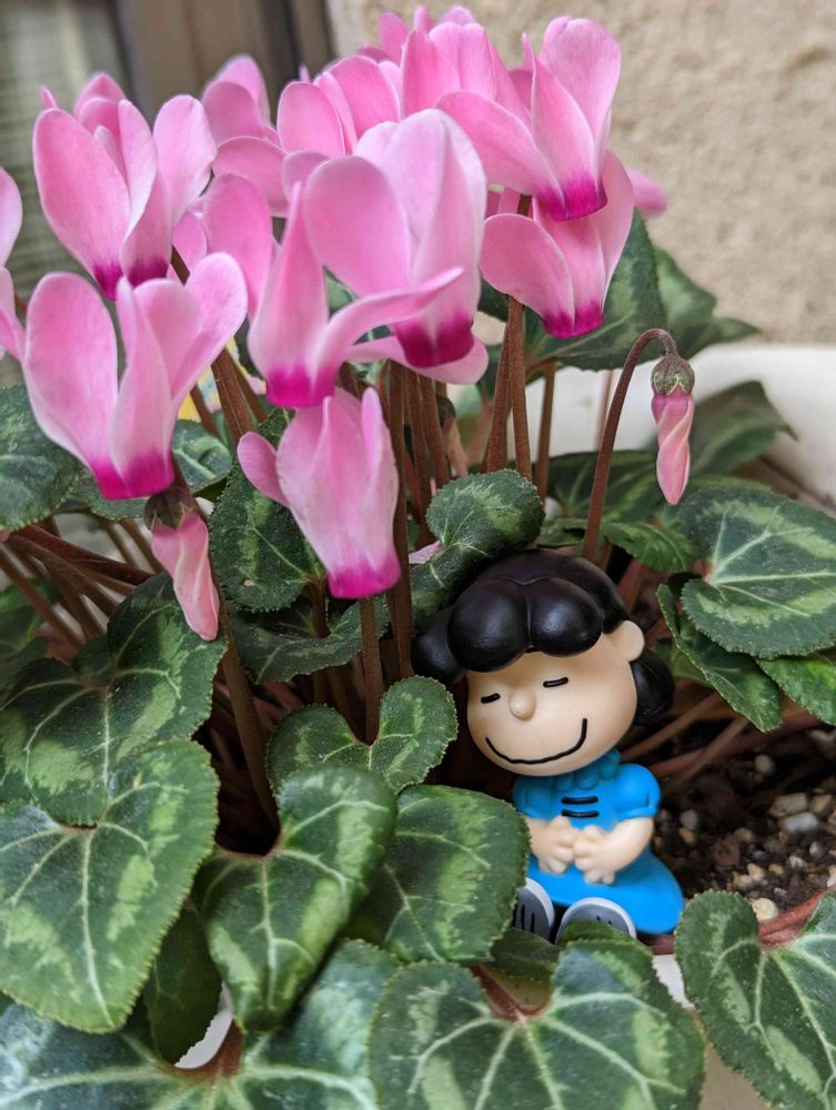 ガーデンシクラメンに寄り添って、何か楽しそうなことでも夢みてるのかな🤔