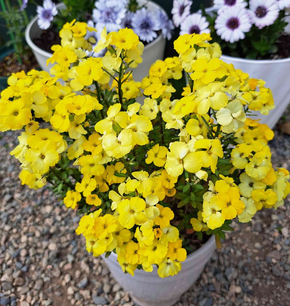 昨年「エリシマム スプリングパーティー」の零れ種から咲いた黄色一色のお花が、今年も鮮やかな黄色で咲いてくれています💛