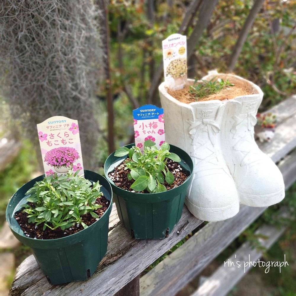 サフィニアアート 小梅ちゃん,サフィニアプチ さくらもこもこ,ミリオンベル アンティークレモンの投稿画像
