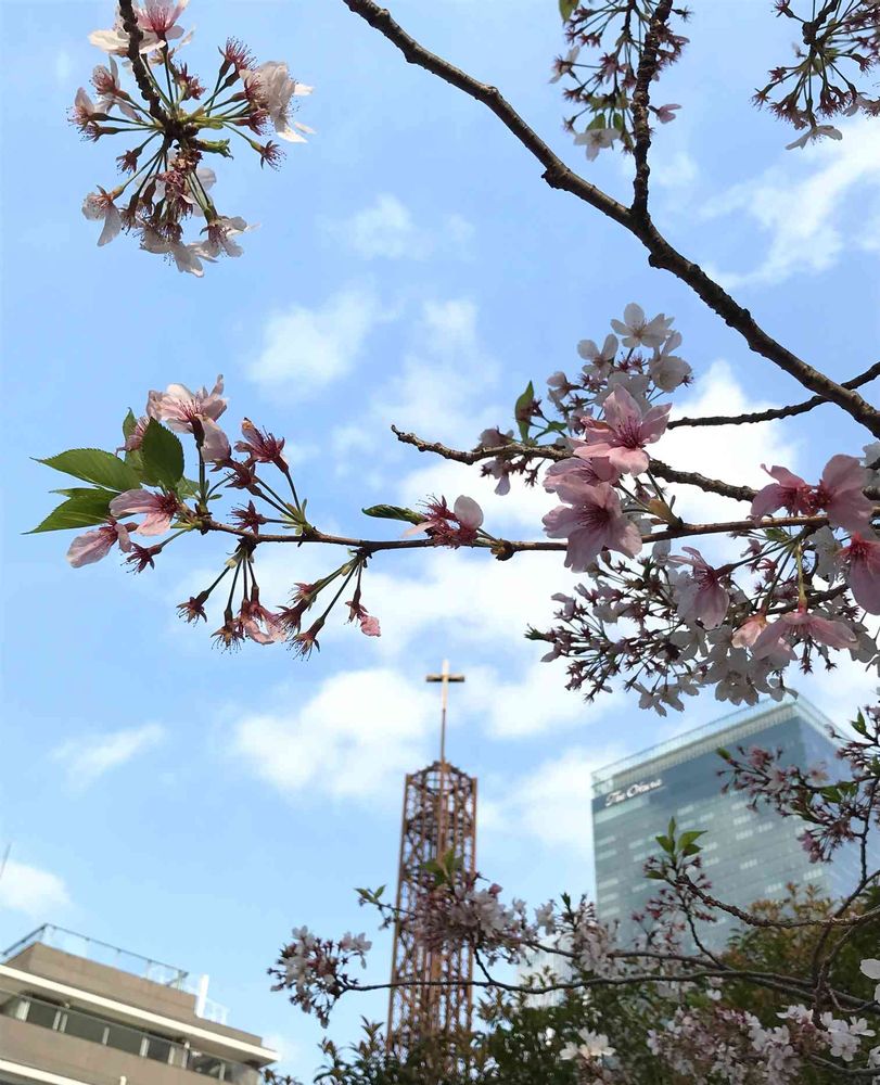 桜🌸葉っぱが多くなったものの、充分楽しめました〜☺️🥰写真の教会⛪️は、三浦友和さん山口百恵さんが結婚式をした教会です(霊南坂教会)