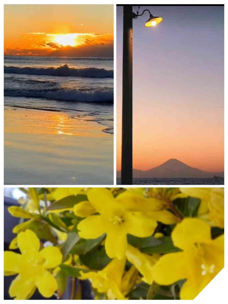 静岡県の海、山中湖の夕焼け、富士山の素敵な風景、真っ黄色のビタミンカラーのベンジャミンの花⤴️🎶😊