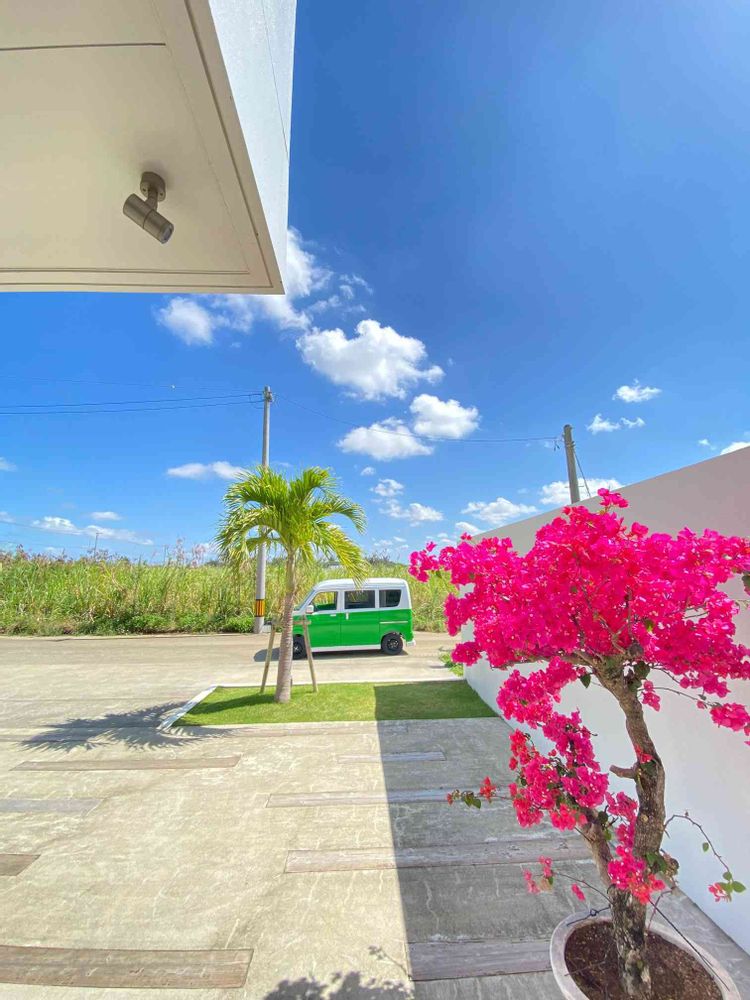 青い空と 緑色の車とピンクのブーケンビリアが南国って感じで素敵♡