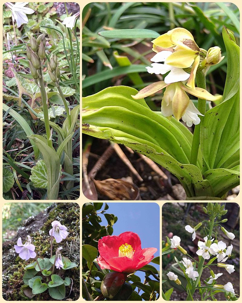 今日のお花エビネです💮 右上は去年5月ので左上が今朝のエビネです💜🤍💙 待ってるね🥰💗