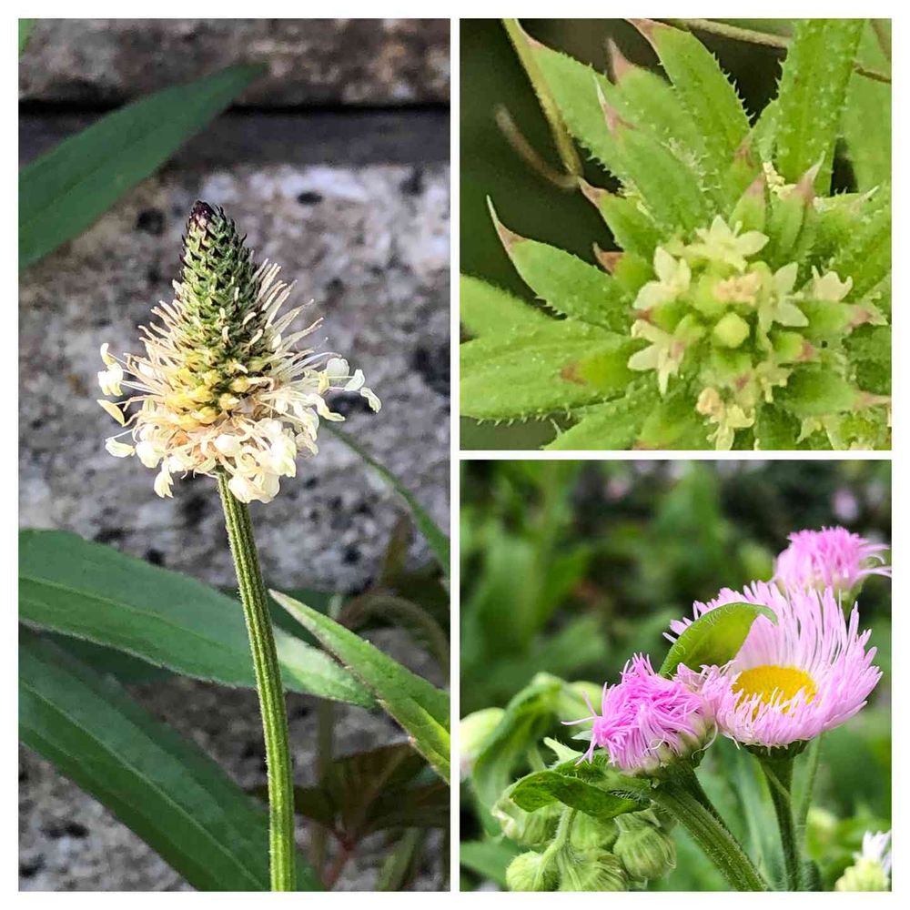 左 ヘラオオバコ🌱 上 八重葎🌱 下 ハルジオン🌸