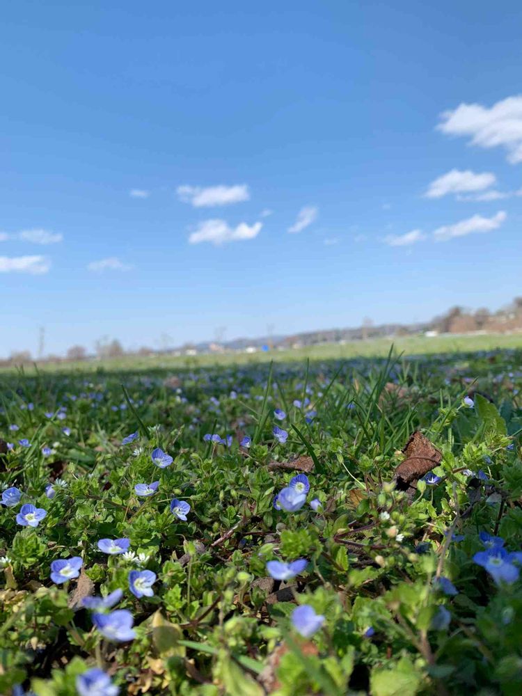 オオイヌノフグリの淡い青が、ずっと向こうまで広がってました😄