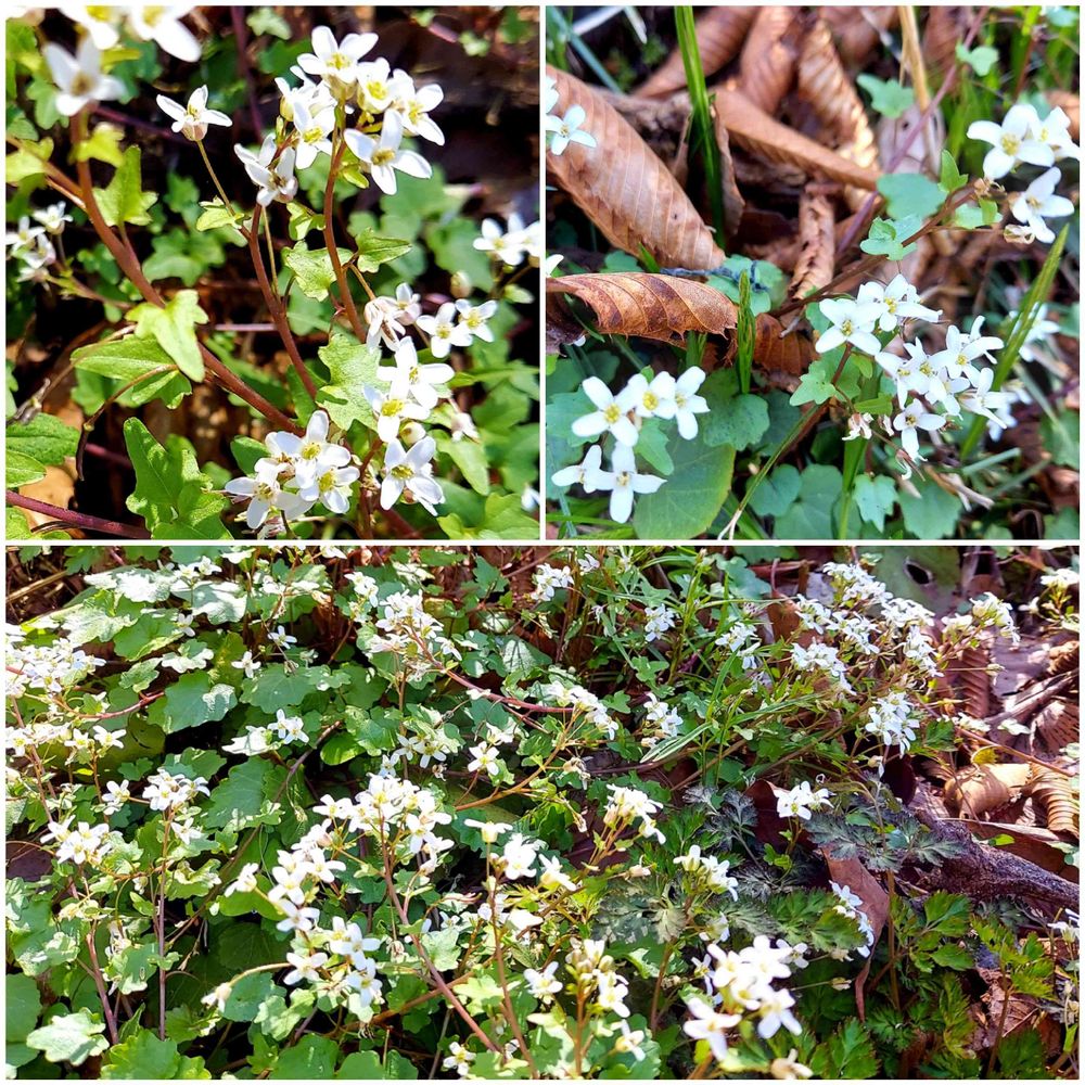 🔎マルバコンロンソウも良く似た白い十字型の4弁花ですが、葉が丸く縁には粗く不規則な鋸歯があるのが特徴だそうです❣️