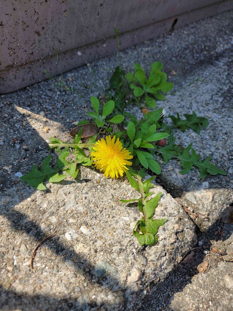 お買い物に行こうとしたら門の前の縁石にど根性たんぽぽがしがみついていました🤩