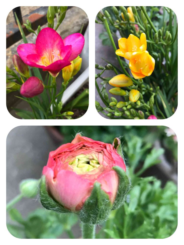 プランターのフリージアが咲きました〜💛💗 優しい香りがします。