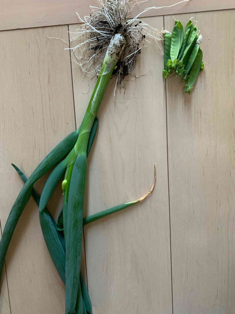 庭で栽培してるネギとサヤエンドウ収穫✨✨