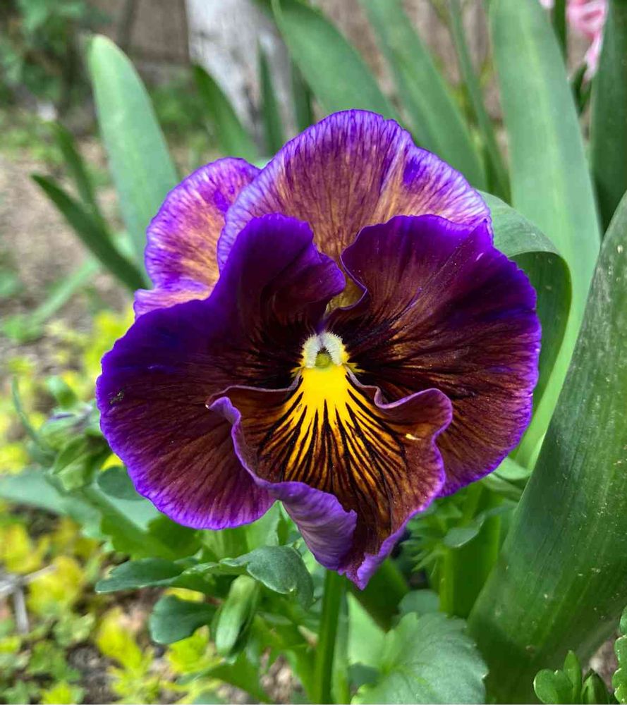 とっても不思議な色合いのパンジーを庭で発見しました😆 縁が光ってる?ように見えて、ずーーっと魅入ってしまいました💕