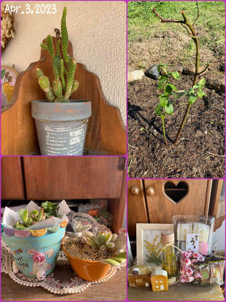 ↗︎バラと夢CLUB🌹のプレ企画で縁さんからのブルーベリー🫐苗木 今日 草ボーボーの畑を少し草刈りして耕して植え付けしてみました 上手く育つといいなぁ🤫