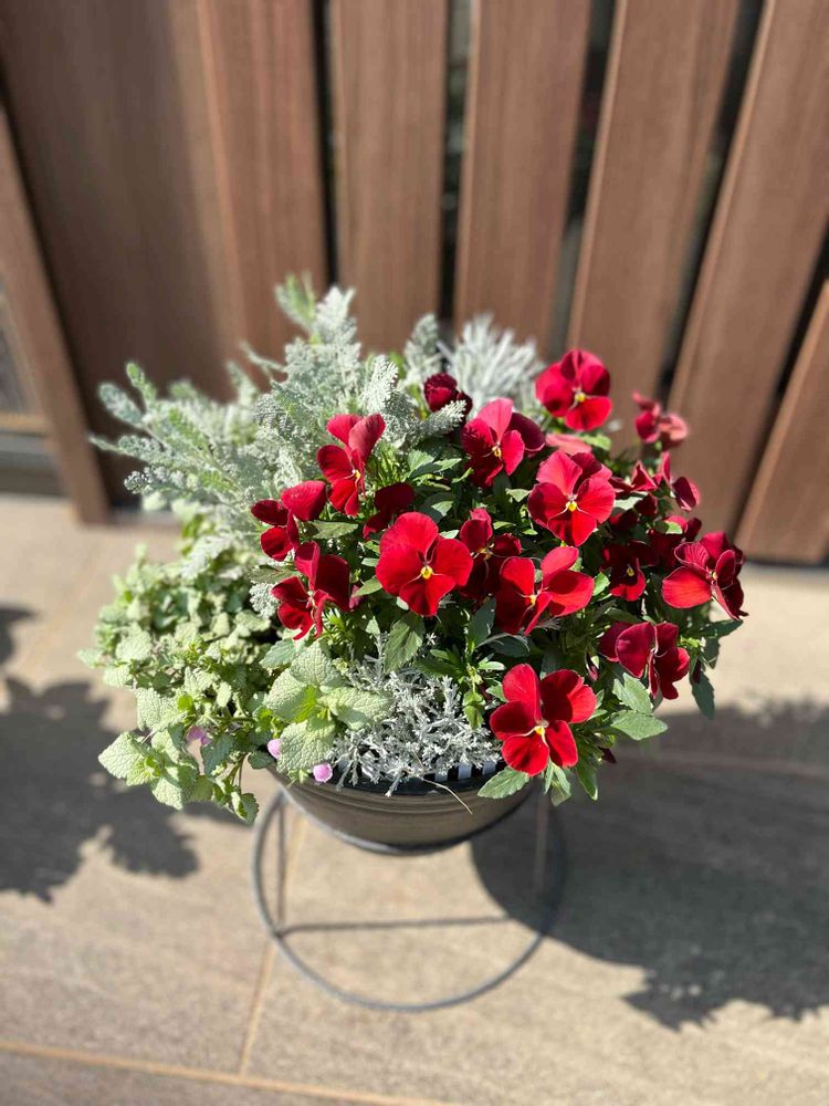 クリスマスをイメージして作った寄せ植え。暴れていたので散髪しました😆✂️