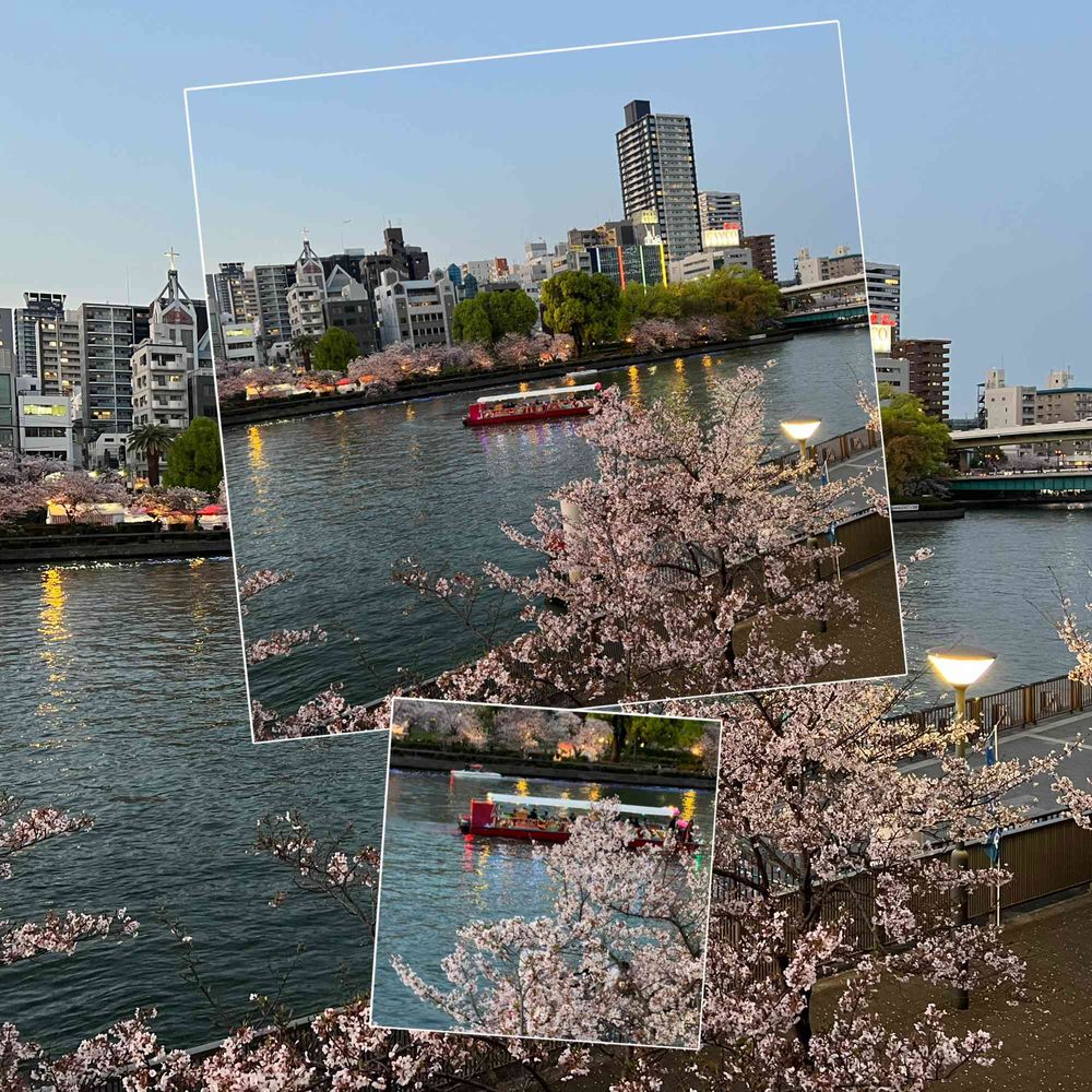すれ違う人々、仕事上がりに花見で一杯 👏🏻