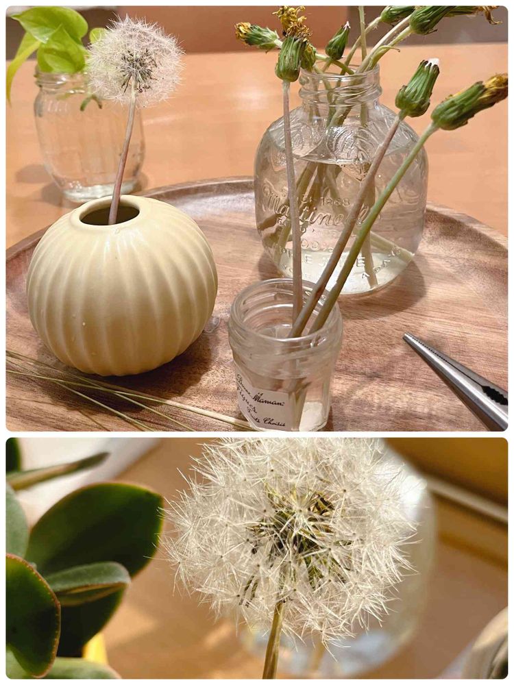 綿毛の一輪挿しも素朴だけど素敵〜🎶