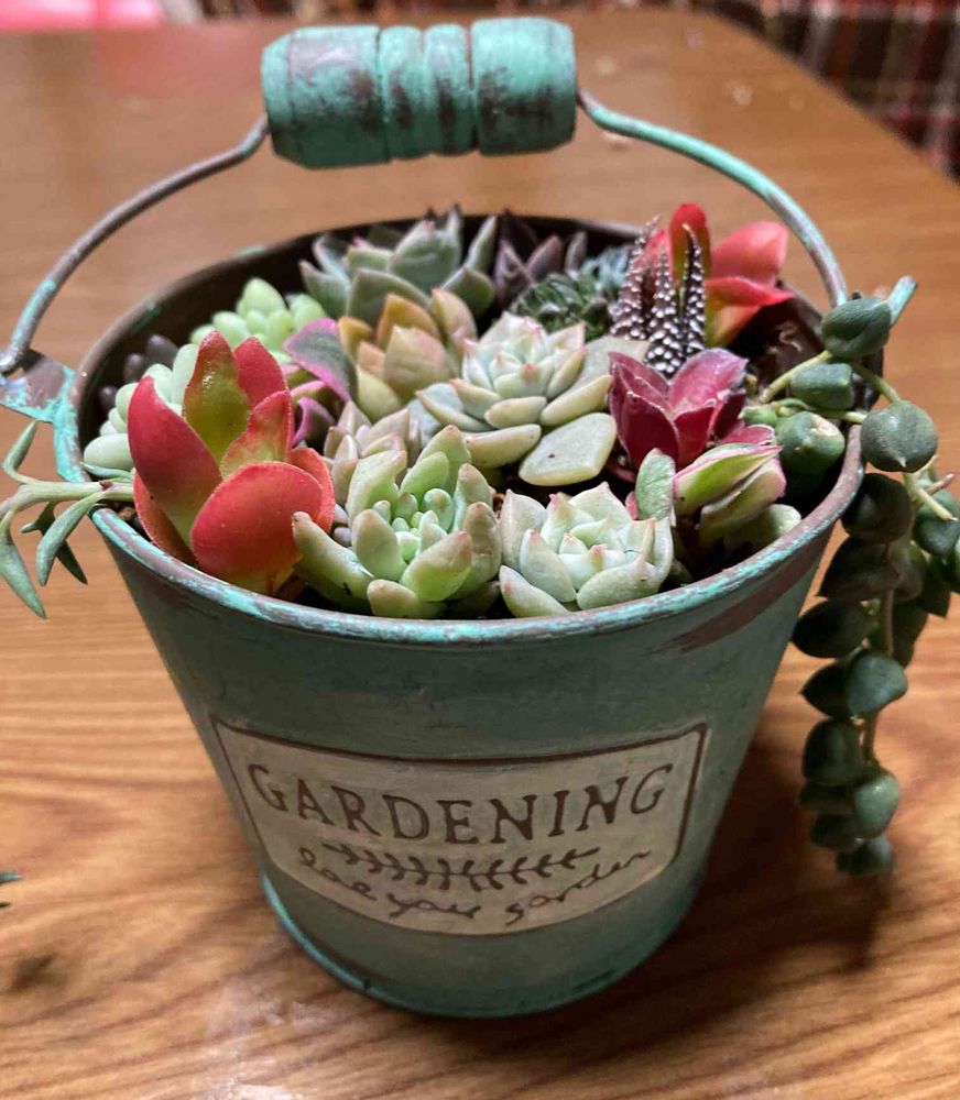 9歳の孫が容器も選び作った初めての多肉の寄植え