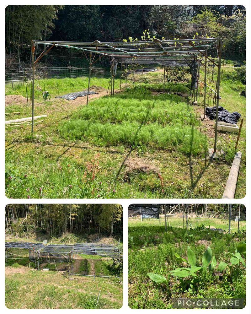 このところの天気が良すぎます😅なので行者にんにくの畑を遮光しました😀