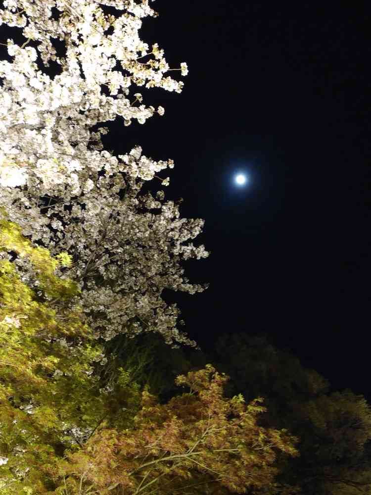 卯月🐰ライトアップの夜桜を愛でに出かけました🌸(*´ω`*)🌸主役は桜?青葉?朧月?それとも…後ろで皆を包んでくれてる黒い夜~🕶🎩